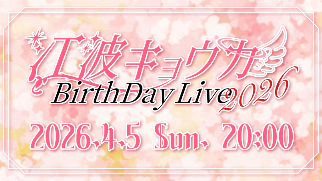 バーチャルアイドルグループPalette Project(以下「パレプロ」)の「江波キョウカ」が誕生日を記念して、「江波キョウカBirthday Live 2026」を2026年4月5日(日) 20:00 から開催いたします。