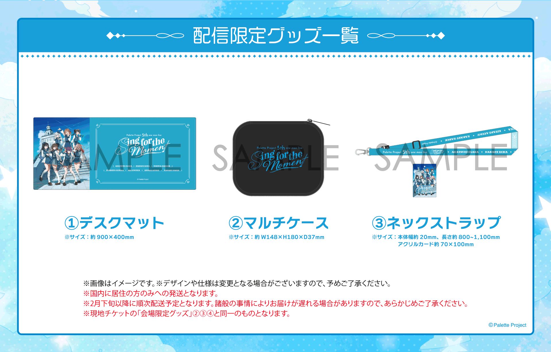 「直筆サイン入りチェキ風カード」「会場限定グッズ デスクマット」「会場限定グッズ マルチハードケース」「会場限定グッズ ネックストラップ」